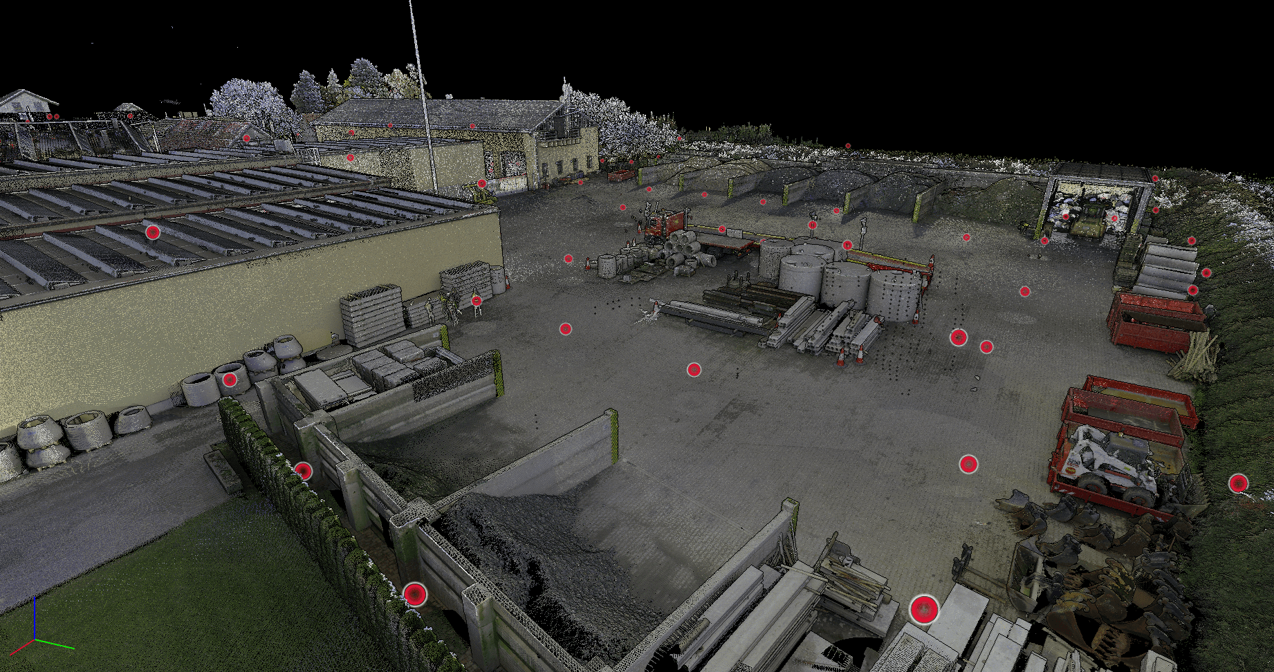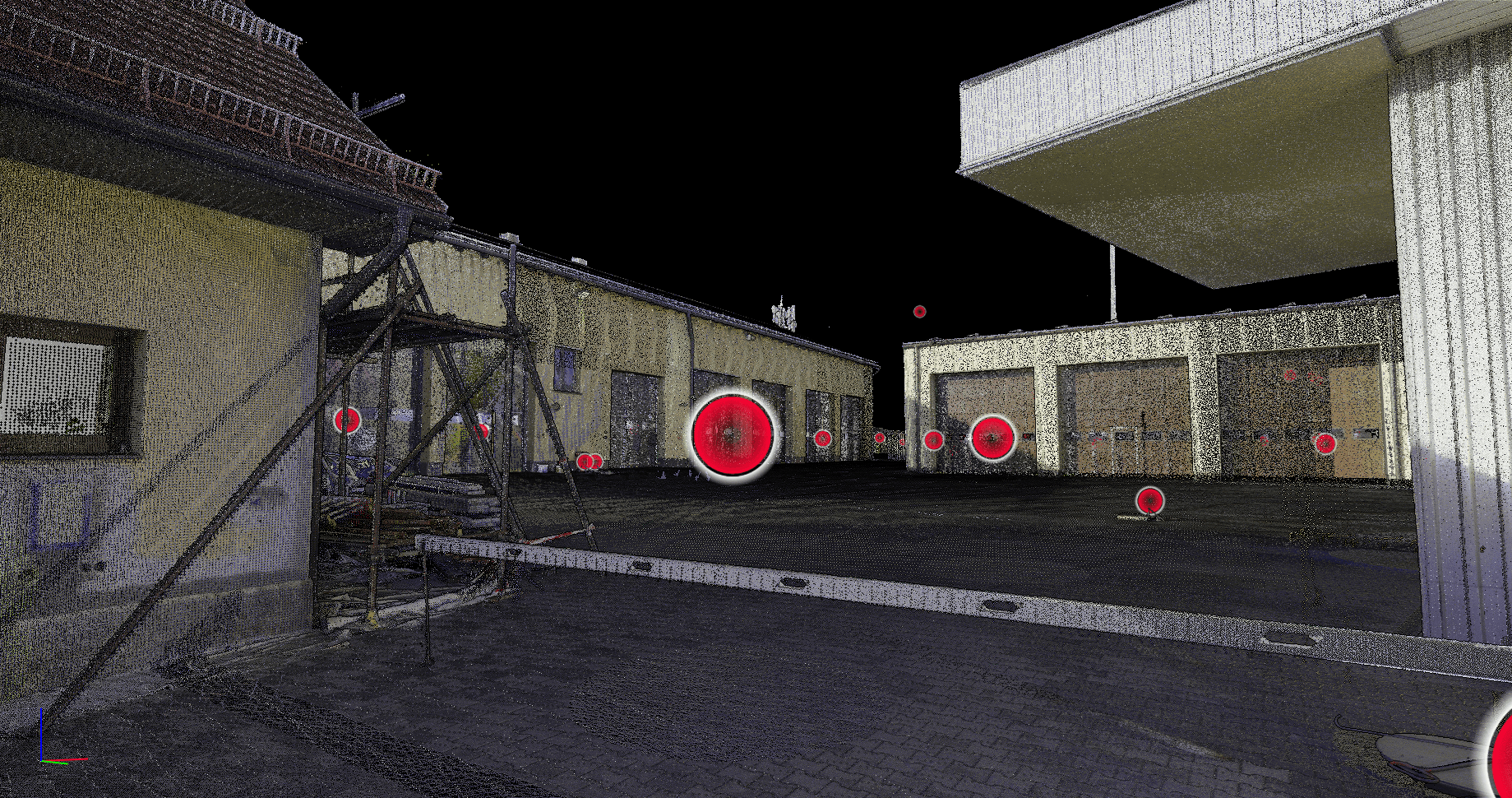 Na místě jsme provedli detailní 3D laserové skenování pomocí přístroje Leica BLK360. Na místě byly zaměřeny stovky stanovisek, které nám přinesly miliardy bodů. Výsledné mračno bodů poskytuje velmi přesný otisk reálného stavu areálu včetně objektů, technologií a drobných detailů v exteriéru. Součástí výstupů byly i panoramatické snímky pro lepší prostorovou orientaci. Díky této digitální dokumentaci lze areál analyzovat, modelovat i plánovat další zásahy bez nutnosti opakovaných návštěv. Rychle, efektivně a s maximální přesností.