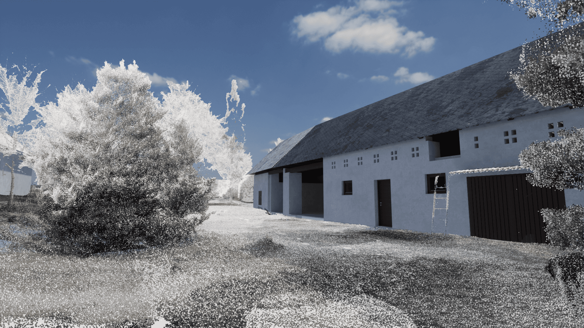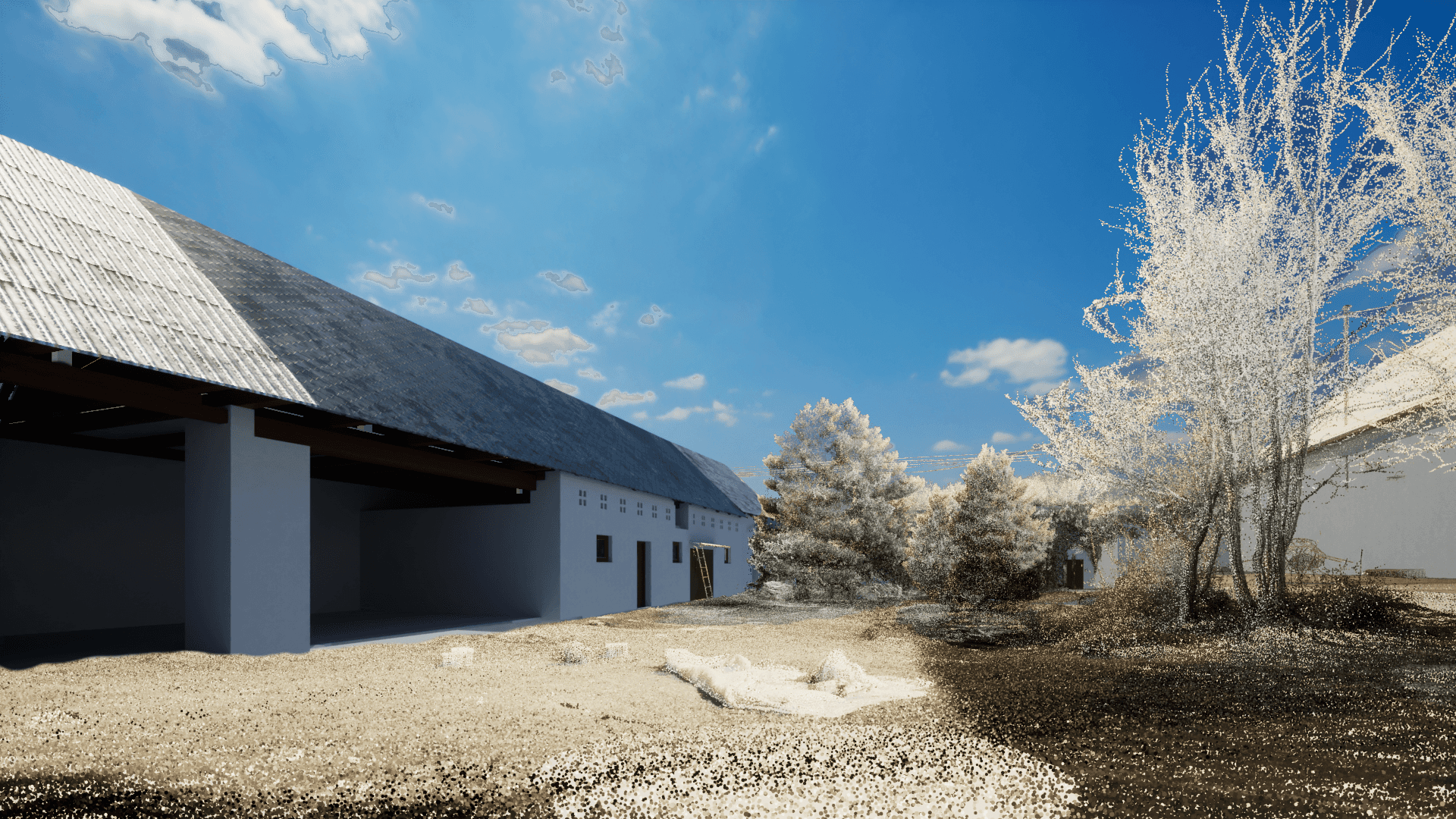 Pro projekty, kde záleží na přesném zasazení do okolí, vytváříme vizualizace na základě mračna bodů. Díky tomu vzniká věrná simulace prostředí bez nutnosti složitého 3D modelování terénu, zástavby či zeleně. Výsledkem je obraz, který respektuje skutečné proporce, světelné podmínky i vztahy s okolními objekty – ideální pro posouzení dopadů stavby a komunikaci s úřady nebo veřejností.